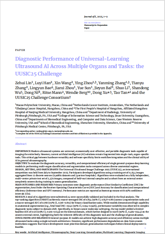 Zehui Lin, Luyi Han, Xin Wang, Ying Zhou, Yanming Zhang, Tianyu Zhang, Lingyun Bao, Jiarui Zhou, Yue Sun, Jieyun Bai, Shuo Li, Shandong Wu, Dong Ni, Ritse Mann, Wendie Berg, Dong Xu, Tao Tan and the UUSIC25 Challenge Consortium